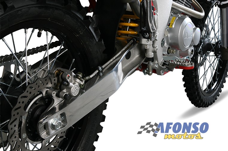 Características fundamentais para a prática de Enduro foram melhoradas, graças ao novo quadro de dupla trave de alumínio, que reduziu o peso do quadro, melhorando a maneabilidade e ao mesmo tempo mantendo elevados níveis de rigidez.