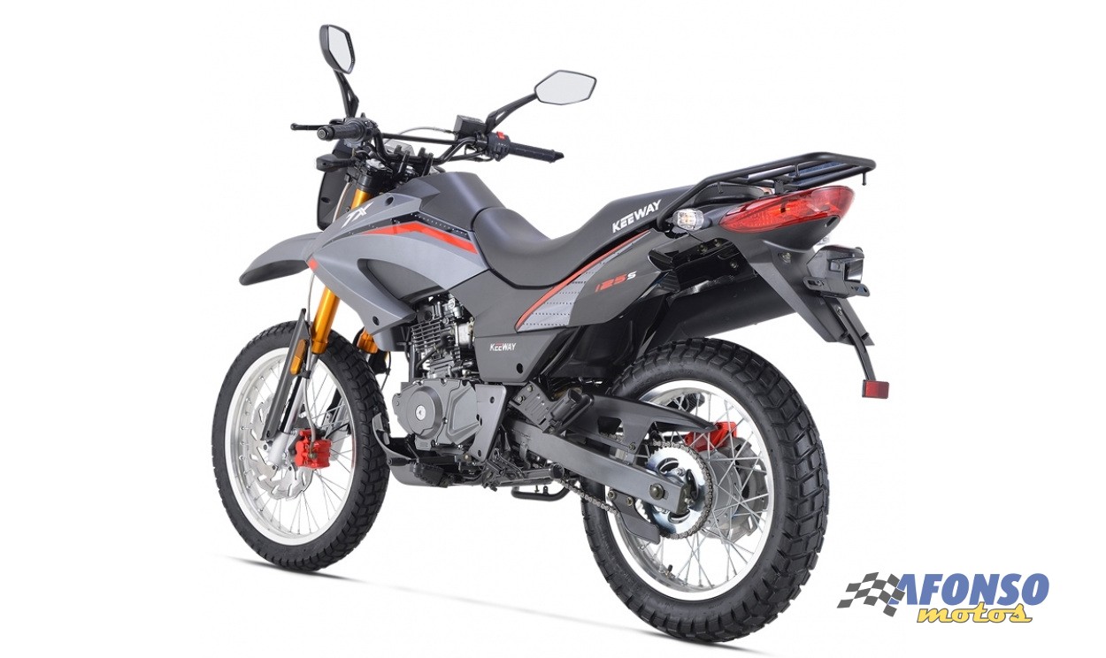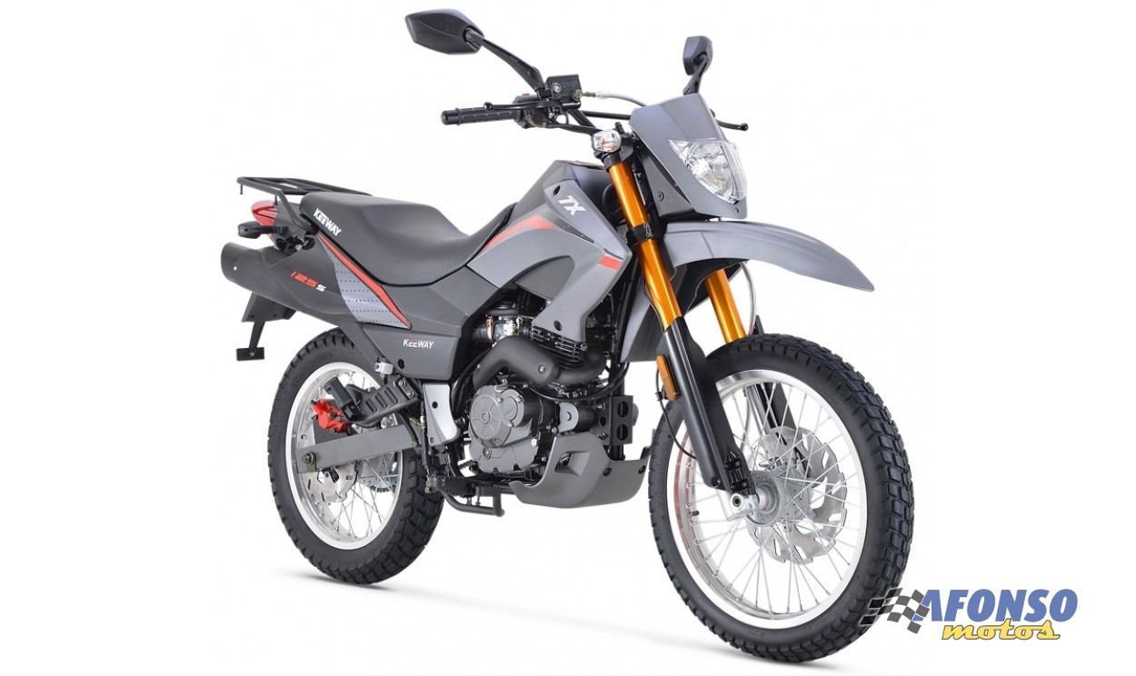 A TX125 Enduro equipada com um motor a 4 tempos, jante dianteira de 19 polegadas e traseira de 17 polegadas.